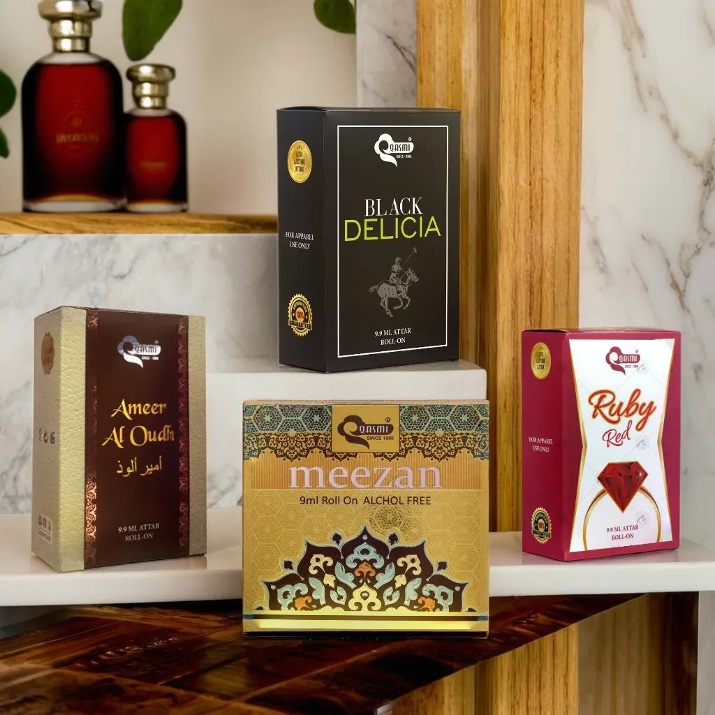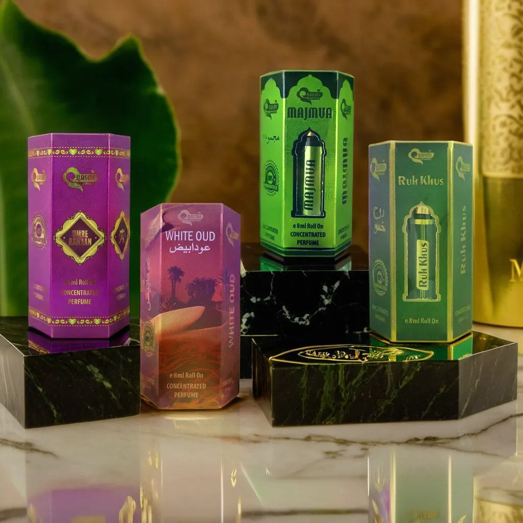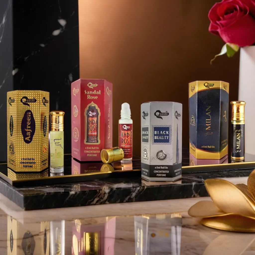 QASMI is an Indian perfume brand which is famous for creating new and exquisite perfumes. They offer a wide range of attars, including traditional Arabic and modern blends, catering to various preferences. The flavors of Rose, Jasmine, Saffron, Sandalwood, Oud, Musk etc in different series and sizes which are Silver Series, Gold Series, Diamond Series and Minar series best for gifts.