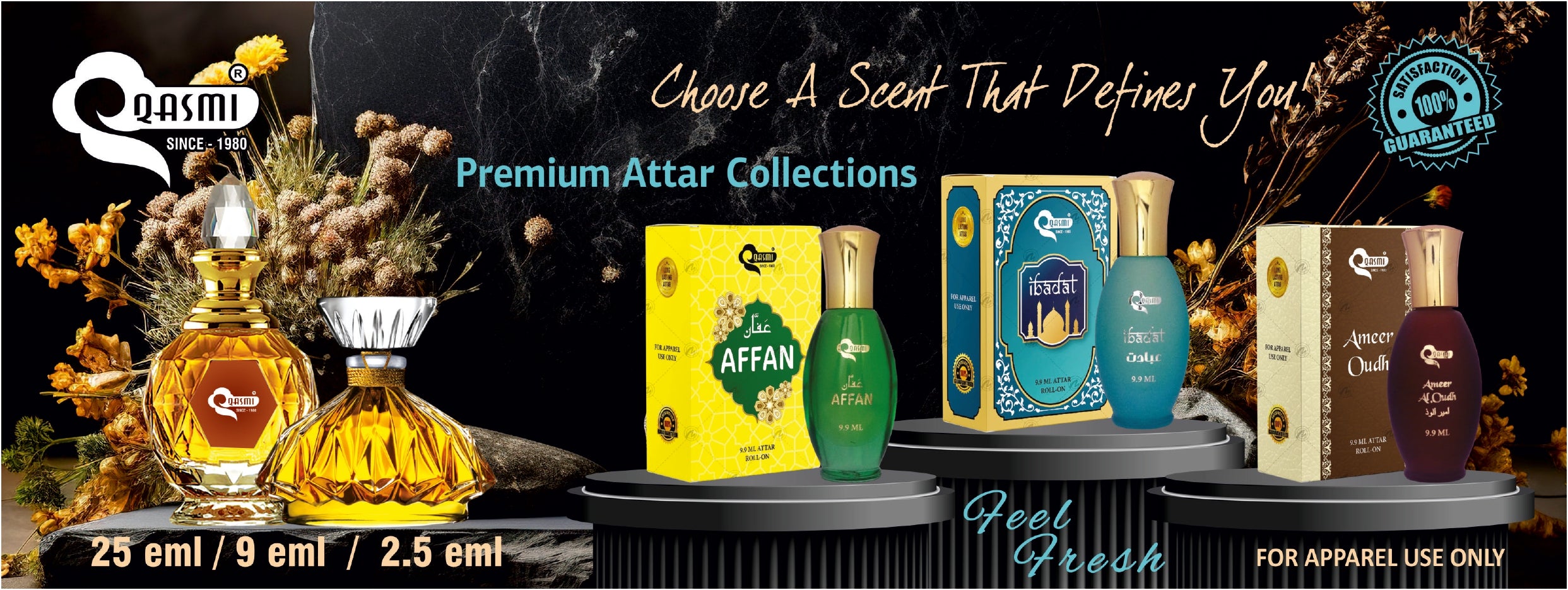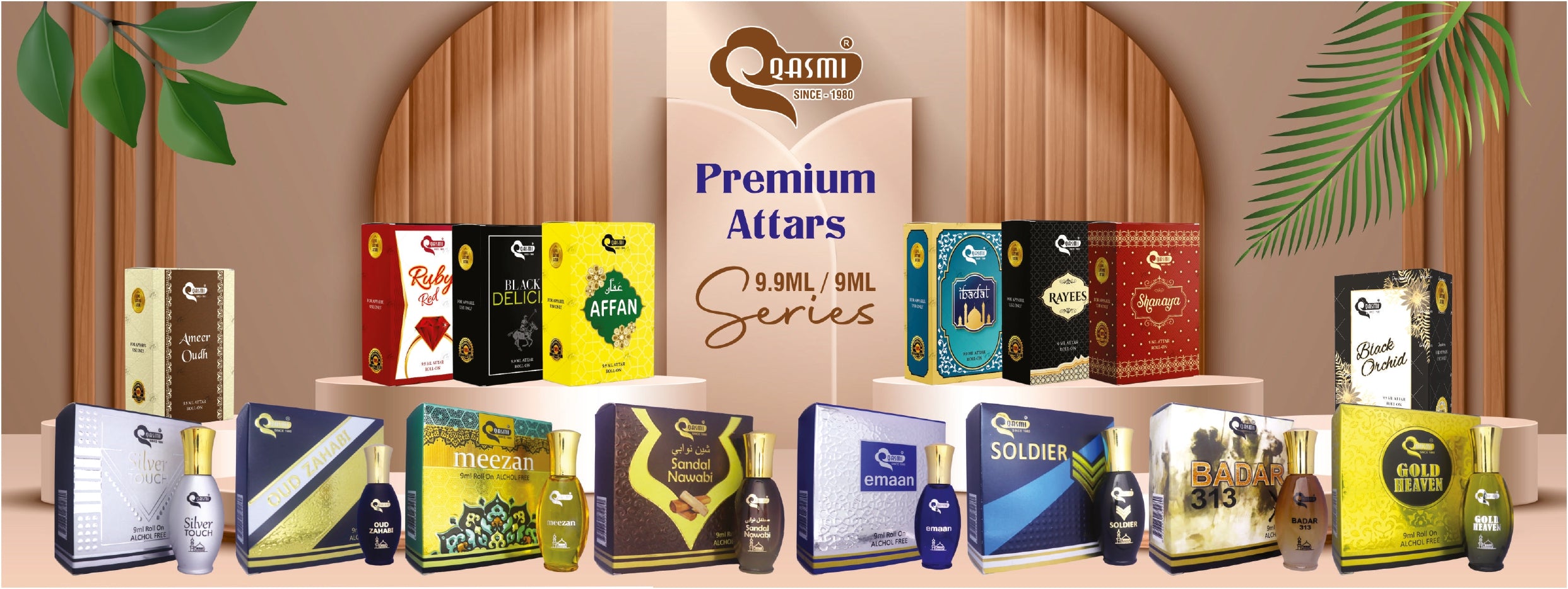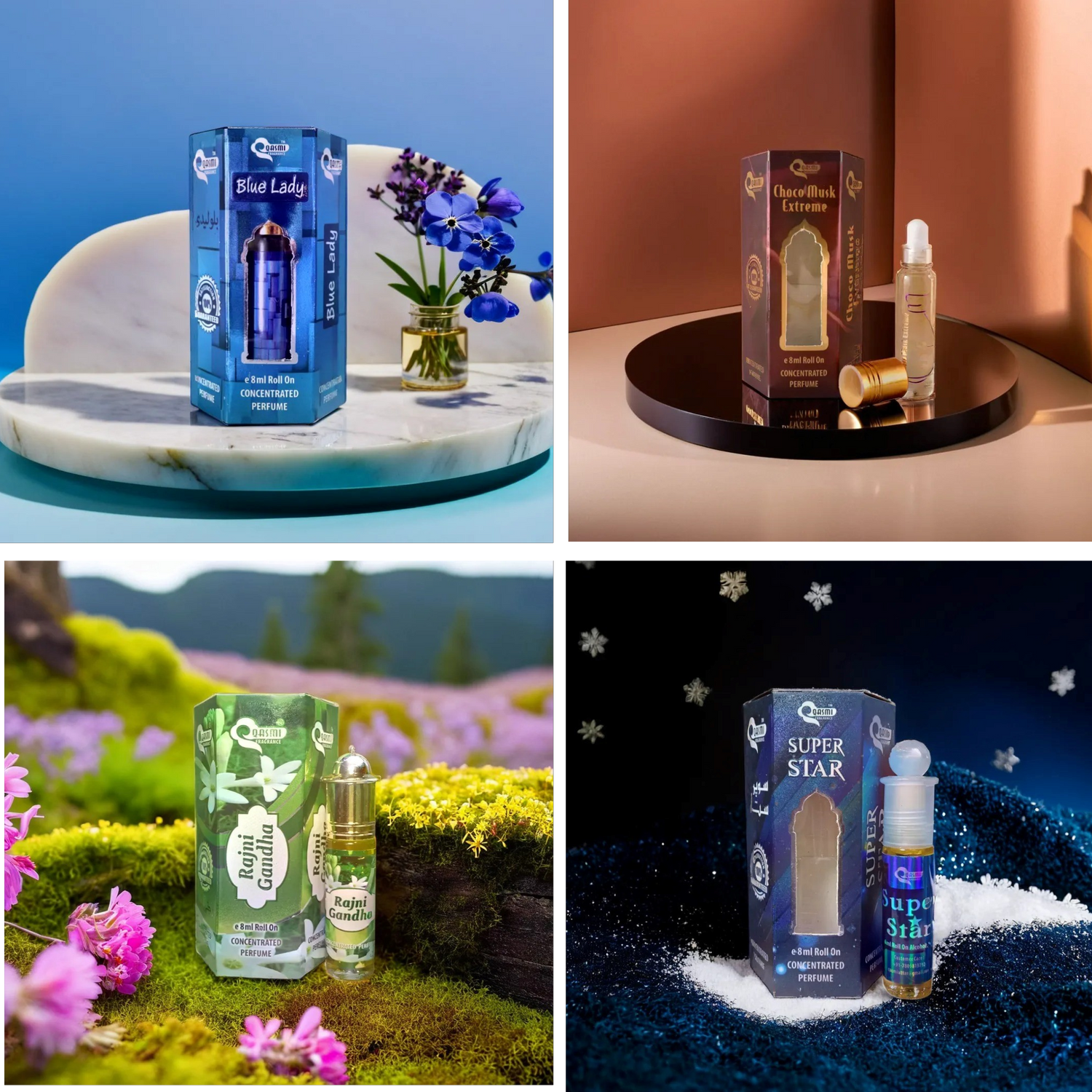 QASMI is an Indian perfume brand which is famous for creating new and exquisite perfumes. They offer a wide range of attars, including traditional Arabic and modern blends, catering to various preferences. The flavors of Rose, Jasmine, Saffron, Sandalwood, Oud, Musk etc in different series and sizes which are Silver Series, Gold Series, Diamond Series and Minar series best for gifts.
