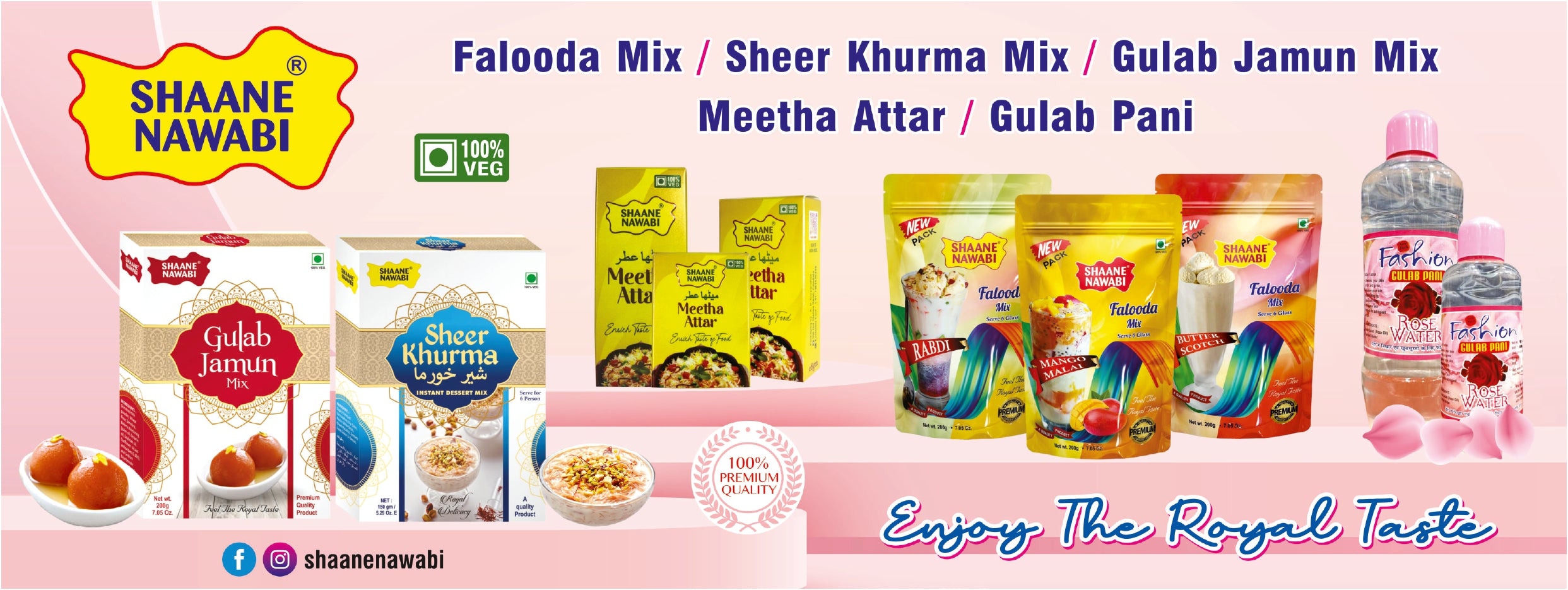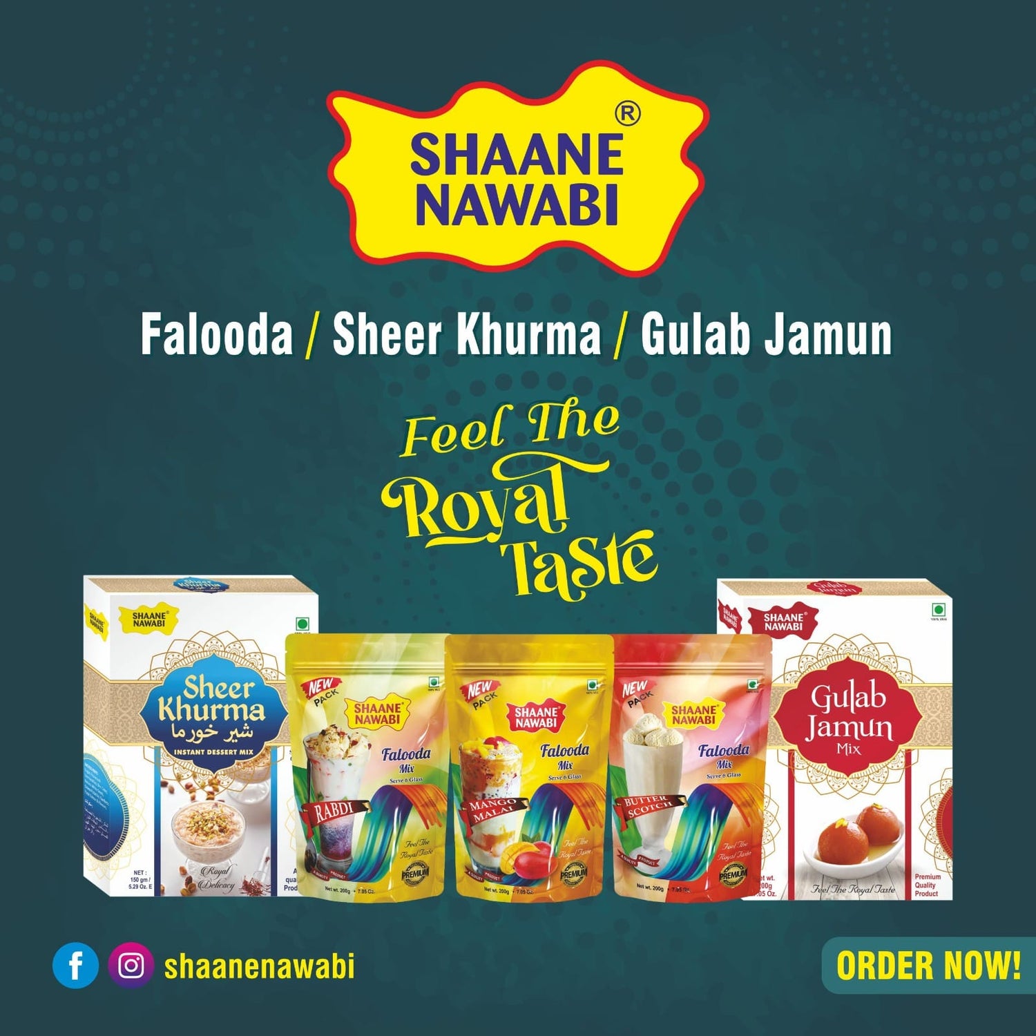 Make delicious and tasty dishes yourself at home in just a few minutes. For this, Shan Nawabi has brought in easy-to-make premixes like Falooda mix, Sheerkhurma mix and Gulab jamun mix. And mitha attar, rose water, and kura water etc to make the food more delicious. Inshallah, in the same way, we will continue to bring products for more new and delicious dishes in the future.