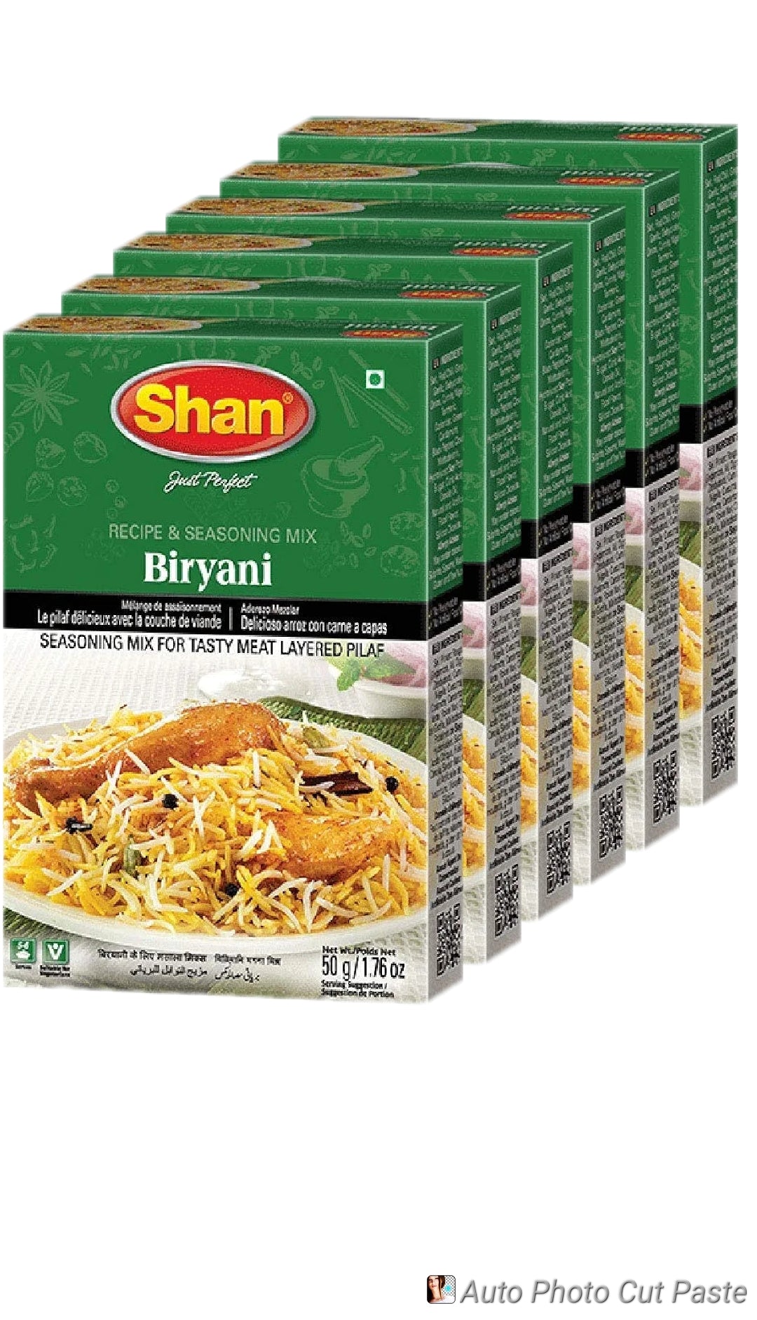 Shan Biryani Masala is a blend of aromatic spices carefully selected to recreate the authentic taste of biryani. It typically includes a mix of cumin, coriander, cloves, cardamom, cinnamon, and other spices, offering a balance of flavors and a rich aroma to enhance your biryani dish.