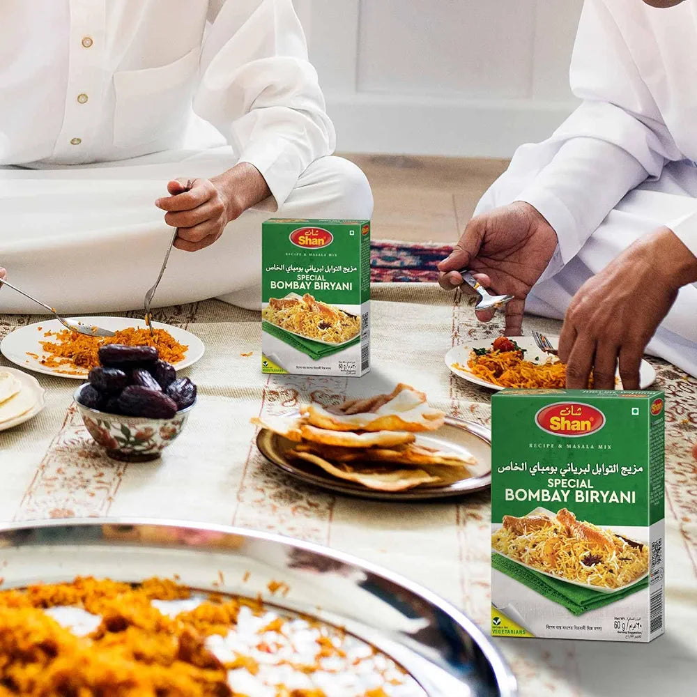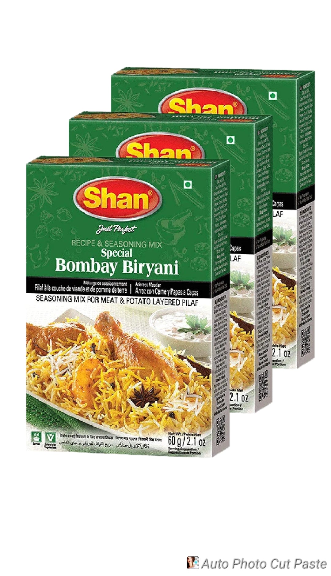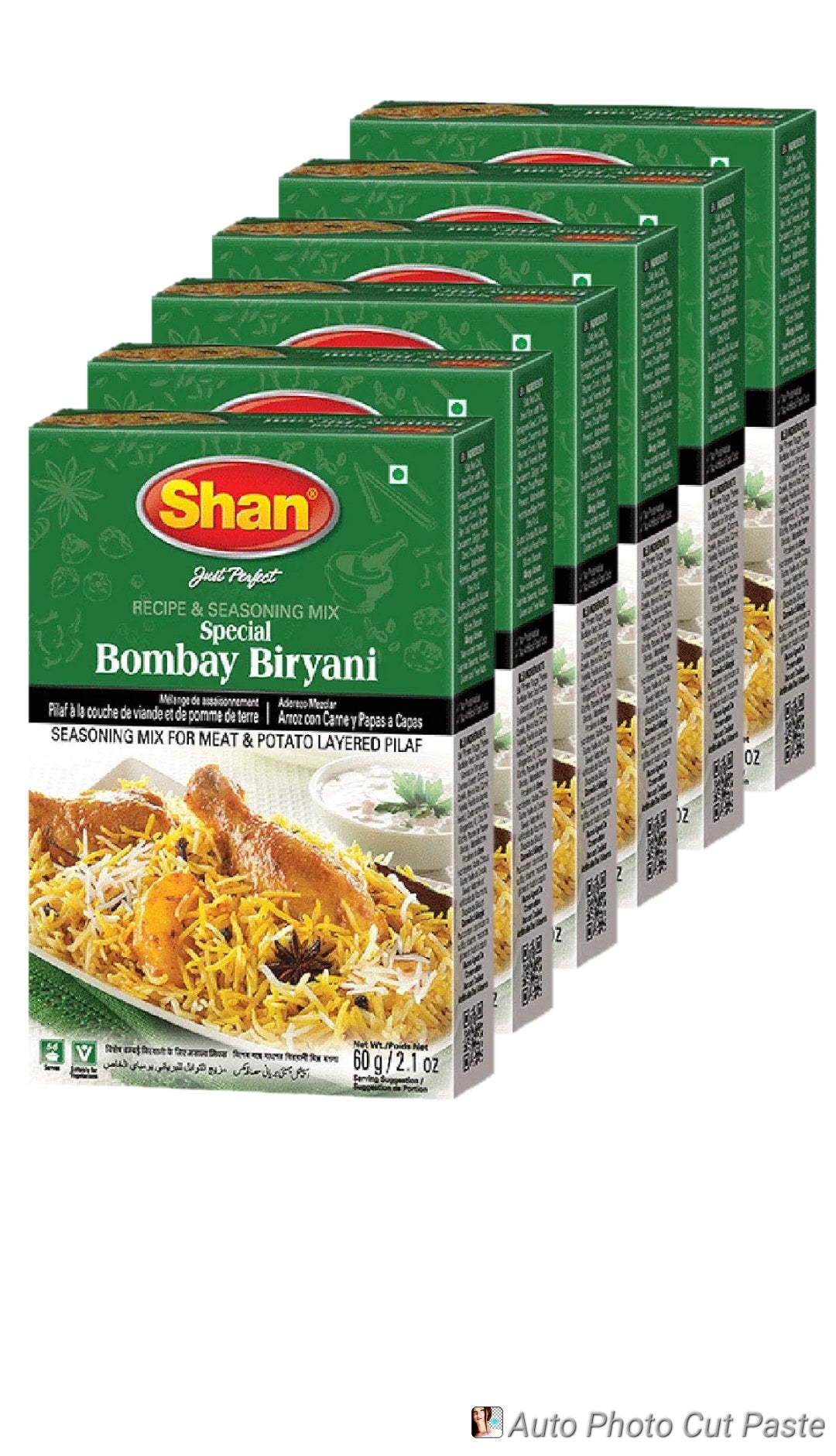 Shan Bombay Biryani Masala is a blend of aromatic spices carefully selected to recreate the authentic taste of biryani. It typically includes a mix of cumin, coriander, cloves, cardamom, cinnamon, and other spices, offering a balance of flavors and a rich aroma to enhance your biryani dish.